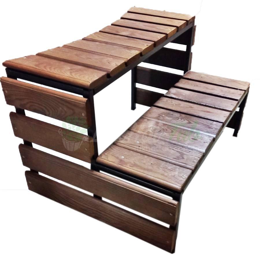 Сходинки для входу в купель виготовлені з дерева на металокаркасі, красиві і не вимагають особливого догляду. Покриті водовідштовхувальною фарбою в тон базової обробки. Єдність матеріалу і вдало підібрані елементи роблять конструкцію міцнішою, забезпечують необхідну жорсткість і зносостійкість.